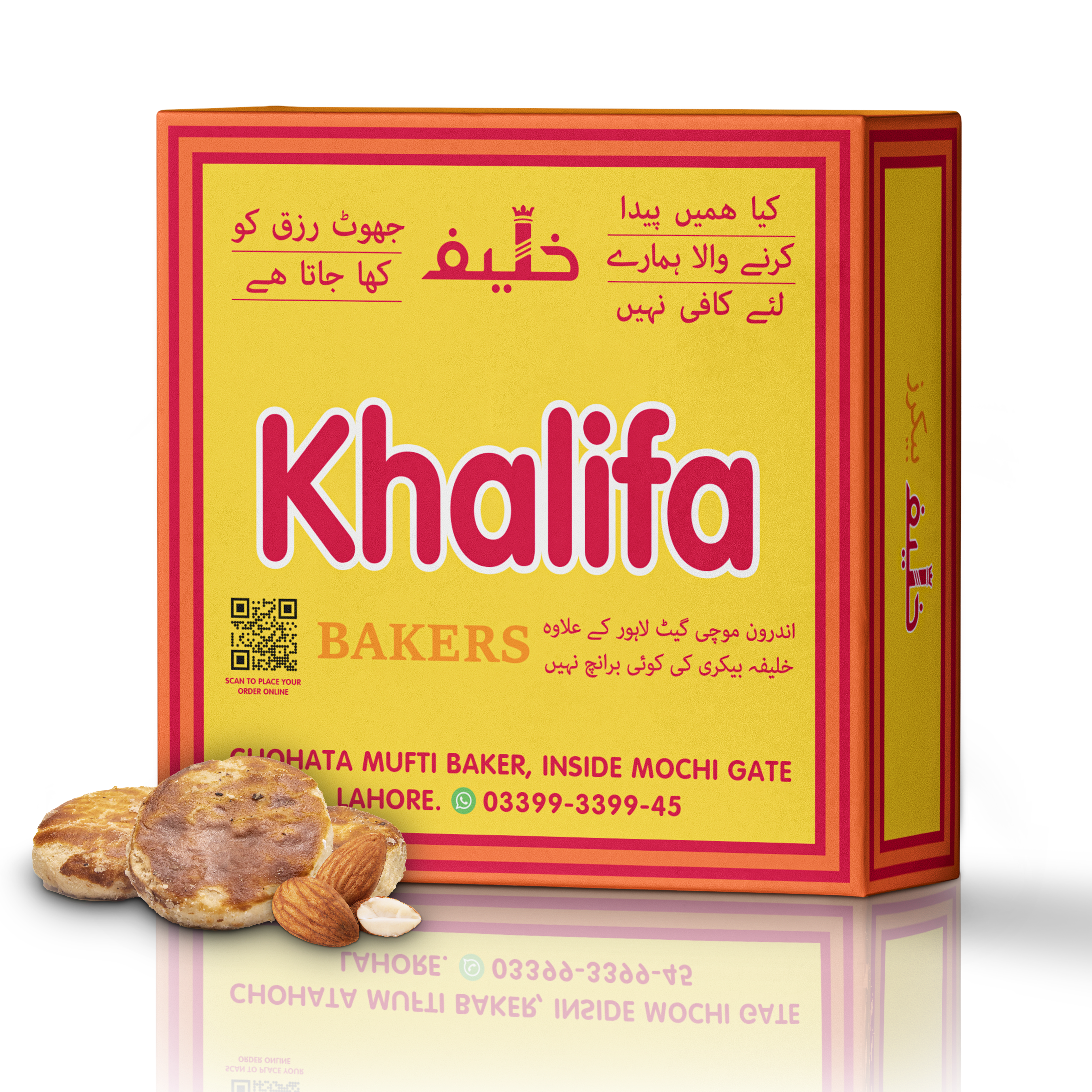 In 1925, Master Baker Baba Umar founded Khalifa Bakers in the heart of Lahore’s Mochi Gate. With a passion for creating unforgettable flavour, he perfected the Almond Nan Khatai a thick, crumbly biscuit that became a local legend. Passed down through four generations, this family recipe remains unchanged, blending premium desi ghee, fresh almonds, and traditional techniques.